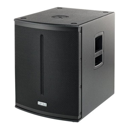 The FBT X-SUB 115SA is a bass-reflex subwoofer design and is the perfect low frequency extension for the FBT X-LITE and FBT X-PRO series speakers. The 115SA provides a DSP processor with 4 presets (2 responses with 2 different cut-off frequencies). The 115SA features a scratch resistant black paint finish, M20 top mounted stand adapter, two FBT design aluminium handles and you can fit four optional 100mm/3,93" transport wheels. The control panel provides two channels with stereo combo XLR/Jack combo inputs, stereo XLR HP filter outs (to satellites), level control, preset selection switch, 0°/180° phase reversal switch, and PROTECT, LIMIT led indicators.