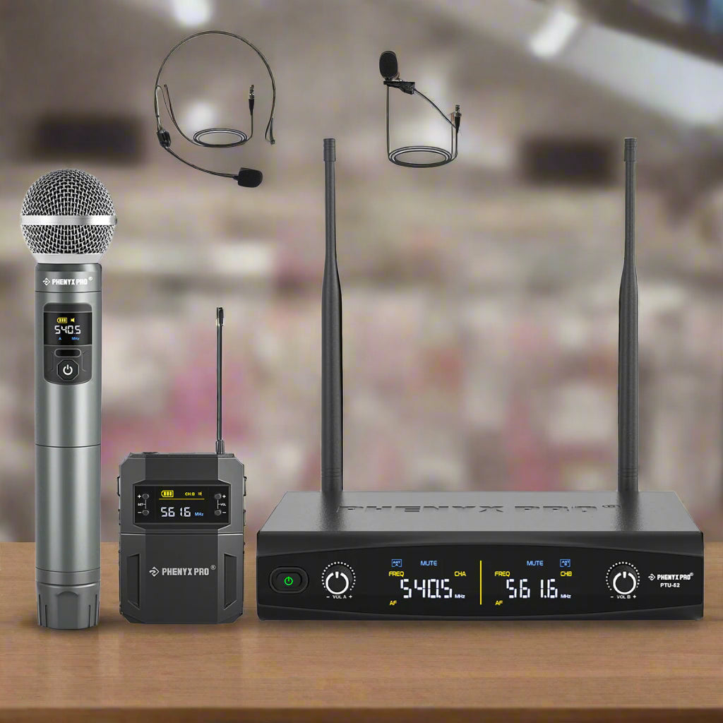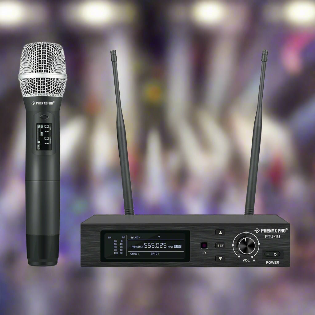 This cordless mic set includes the PTU-1U single channel diversity receiver and one PWH-12 hand held microphone.