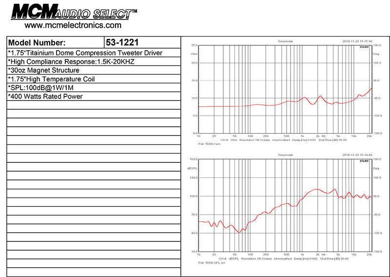 - 100dB@1W/1M