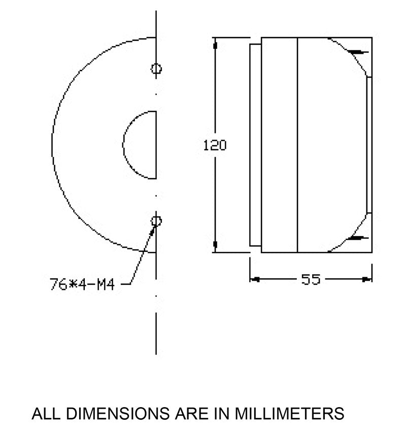 - 4x M4 mounting holes on a 76mm dia outline