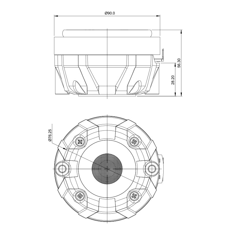 A compact high output 1 inch (25.4mm) throat 8 ohm high frequency compression driver for sound reinforcement and instrument speaker applications from SB Audience. This driver is perfect to replace a blown horn in low power applications such as keyboard and small PA speakers. It will fit most standard horns. These drivers are made to exacting standards with very high quality materials to achieve excellent reliability. Two M6 mounting holes on a standard 76mm (3") diameter circle.