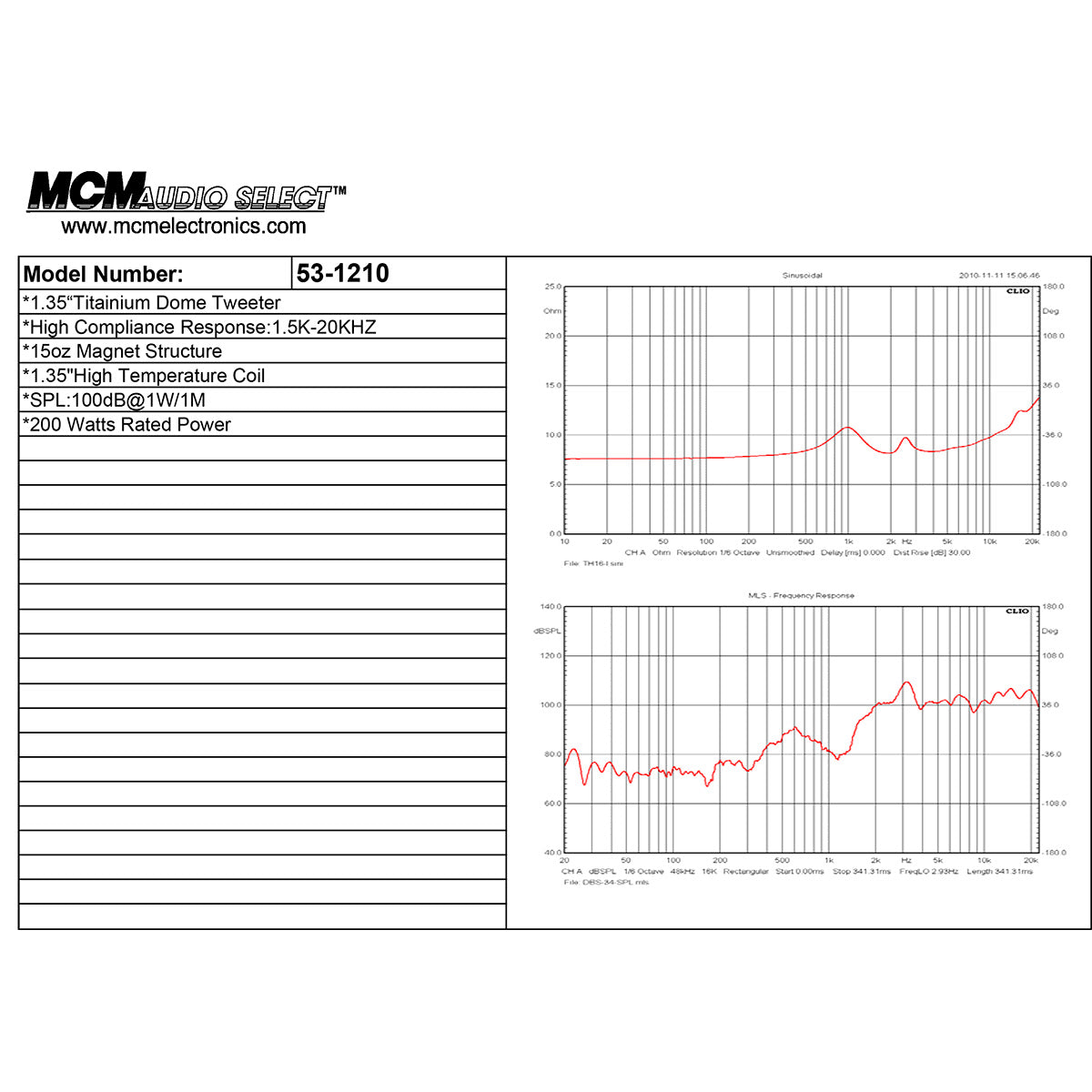 - 100dB@1W/1M