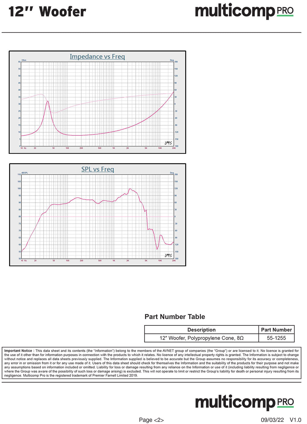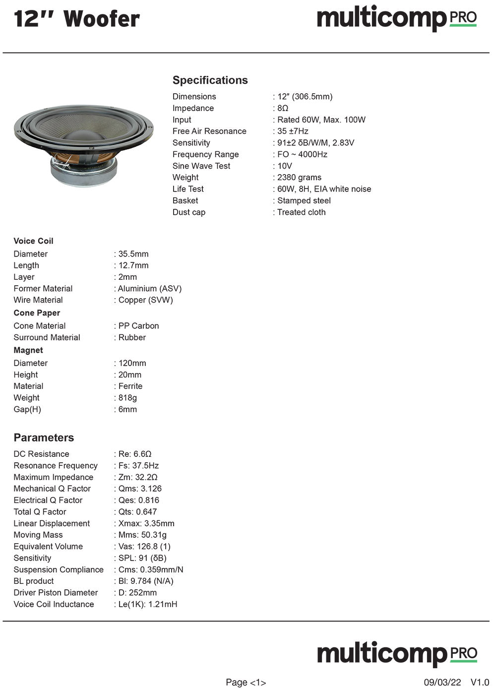 An economical 306mm (12") hifi woofer, great for new designs or to replace a blown drive unit in your vintage home hifi speakers. Thiele-Small parameters are available for enclosure design.