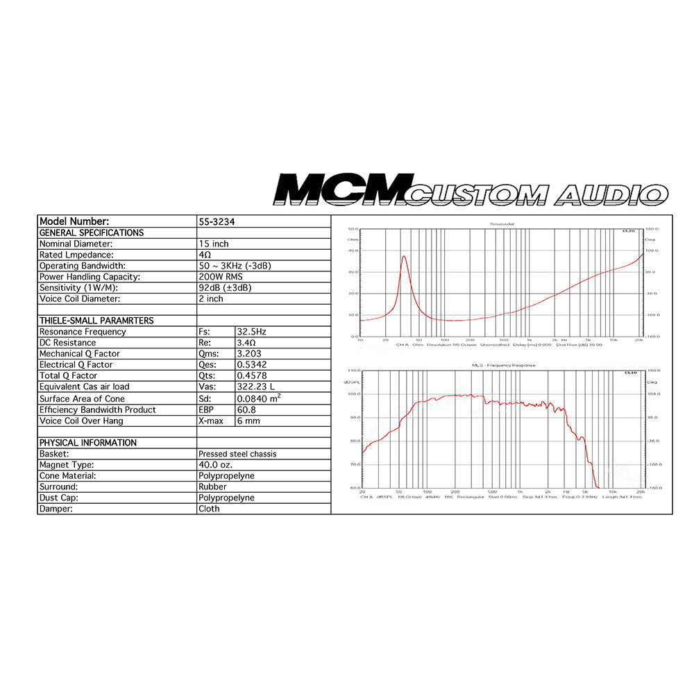 A great quality 4 ohm 381mm (15") hi-fi woofer at a reasonable price. This driver is perfect to replace a blown drive unit in your vintage home stereo speakers or for new hi-fi speaker projects including open baffle designs. It features a smooth frequency response from 40Hz to 3kHz. Thiele-Small parameters are available enclosure design.