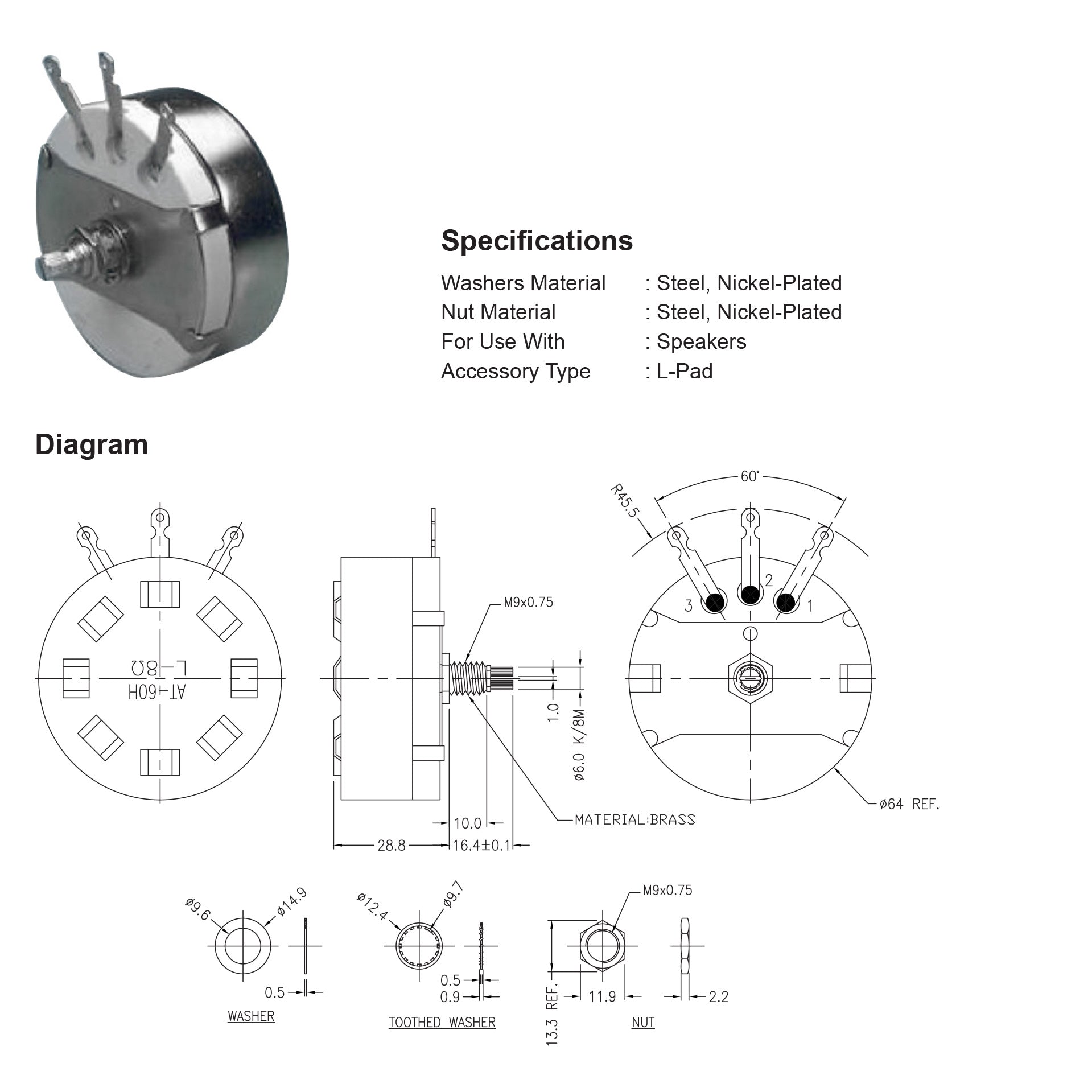 This wire wound attenuator is designed to control the level of a tweeter or high frequency horn whilst maintaining a steady 8 ohm impedance. You can use it to lower the high frequency output of PA horns or hi-fi tweeters to match the bass drivers and typically it is wired between the HF output of the crossover and drive unit. It can also be used to control the volume of speakers under 100W. We also have the matching control knob for speaker baffle mounting. (The L pad is not suitable for use with Piezo tweeters which are much higher impedance).