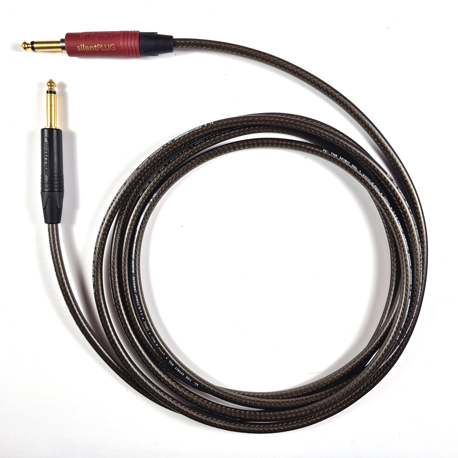 A very high quality electric guitar or bass jack to jack cable using beautifully flexible Sommer Spirit XXL wire. These leads feature gold plated Neutrik jack plugs with one end being the NP2X Silent straight jack which means you can withdraw it from your instrument without any loud bangs and hum. You can also choose a straight or right angle plug for your amplifier or FX pedal input. Not the cheapest guitar lead you can buy but it will last a life time! If you need custom lengths, just ask! (Note these leads are not suitable as speaker leads).